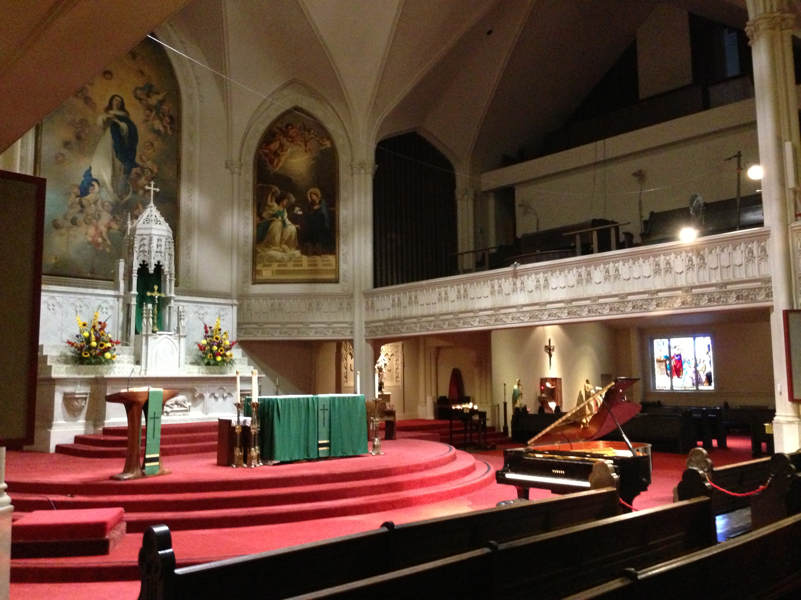 St Mary’s Cathedral is a four block walk from my office in San Francisco, just at the entrance of Chinatown. I found my way there the morning I got a facebook message from my friend telling me his mother, subsequently my friend and mentor who brought me into the world of poetry and cafe society, was raging away in a nursing home. Visiting her was not appropriate. But I felt a need to do something, not just for her, but for all the things that had been missing or was neglected within myself. I wandered into the church along with tourists saddled with cameras and fanny packs. The place was quiet, huge stained glass paintings and statues of the Virgin, Christ and other saints.