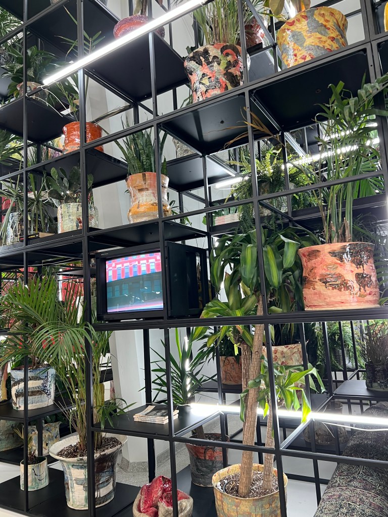 I had good times engaging with artists Kara Walker, Robert Rauschenberg, Keith Herring and plenty others. But something different and deeper sprouted within me while strolling through the gallery. His work communicates with history, memory and is vividly tactile. He produces work one can feel with their eyes, which thrills me. Organic mixtures of mirrors, wood, live plants, bamboo, tiles, black soap, shea butter. It is work that lives. He doesn’t seem to ‘make’ art, but capture it mid-air. The work seem egoless. Despite the inclusion of books in his materials, he isn’t bragging about literacy, but creating a kind of conversation between the authors (Paul Beatty, Richard Wright, Dick Gregory, among others) himself and the visitors to his installations.