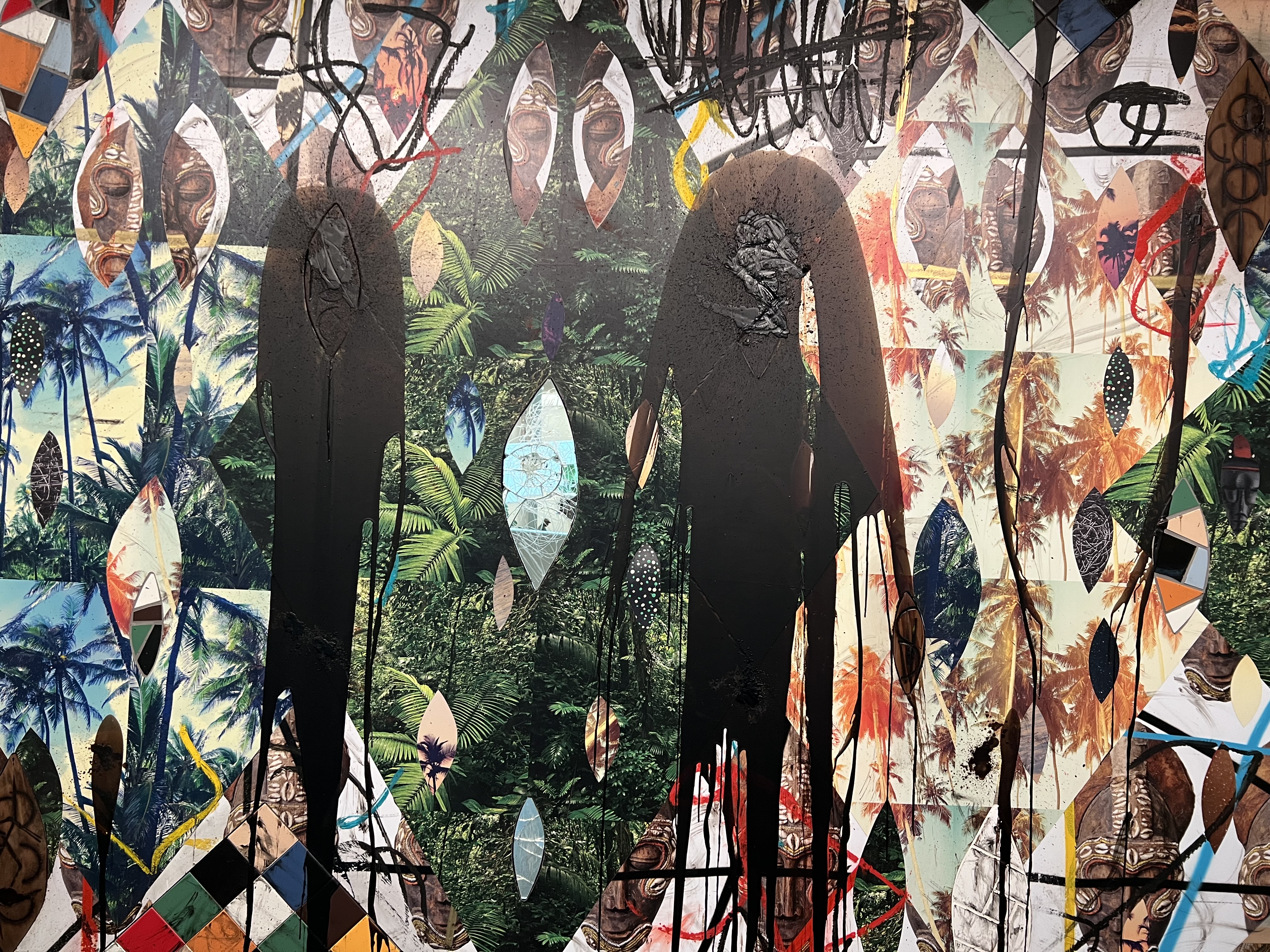 I had good times engaging with artists Kara Walker, Robert Rauschenberg, Keith Herring and plenty others. But something different and deeper sprouted within me while strolling through the gallery. His work communicates with history, memory and is vividly tactile. He produces work one can feel with their eyes, which thrills me. Organic mixtures of mirrors, wood, live plants, bamboo, tiles, black soap, shea butter. It is work that lives. He doesn’t seem to ‘make’ art, but capture it mid-air. The work seem egoless. Despite the inclusion of books in his materials, he isn’t bragging about literacy, but creating a kind of conversation between the authors (Paul Beatty, Richard Wright, Dick Gregory, among others) himself and the visitors to his installations.